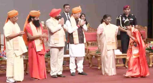 हरिद्वार पहुंचकर राष्ट्रपति ने पतंजलि विश्वविद्यालय के दीक्षांत समारोह में बतौर मुख्य अतिथि भाग लिया और छात्र-छात्राओं को डिग्रियां एवं मेडल प्रदान किए। इस अवसर पर मुख्यमंत्री और राज्यपाल भी मौजूद रहे। राष्ट्रपति के आगमन को देखते हुए हरिद्वार पुलिस ने स्थानीय नागरिकों और बाहर से आने वाले वाहनों के लिए विशेष रूट प्लान जारी किया, ताकि यातायात सुचारू रहे।