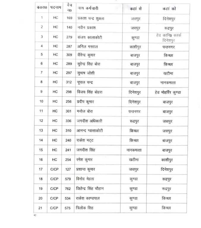 उत्तराखंड में कानून-व्यवस्था को मजबूत बनाए रखने के लिए पुलिस विभाग लगातार सख्त कदम उठा रहा है। इसी क्रम में ऊधमसिंह नगर जिले में बड़ा प्रशासनिक फेरबदल किया गया है। इस बड़े फेरबदल को पुलिस विभाग में एक महत्वपूर्ण प्रशासनिक कार्रवाई माना जा रहा है, जिससे जिले में कानून-व्यवस्था को और मजबूत करने की उम्मीद है।